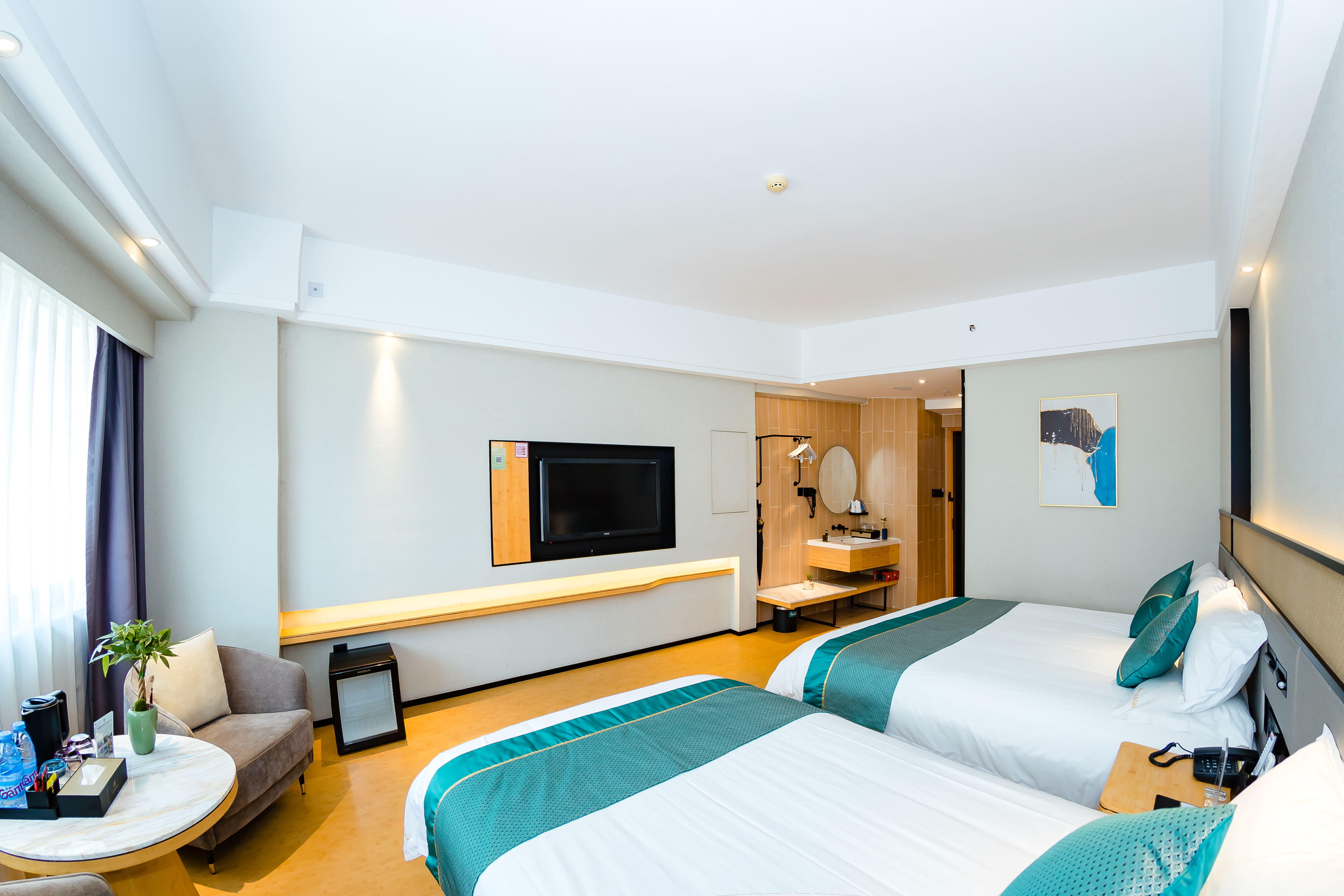 智能精品亲子房(深睡护脊床垫+贡缎床品+迷你冰箱)